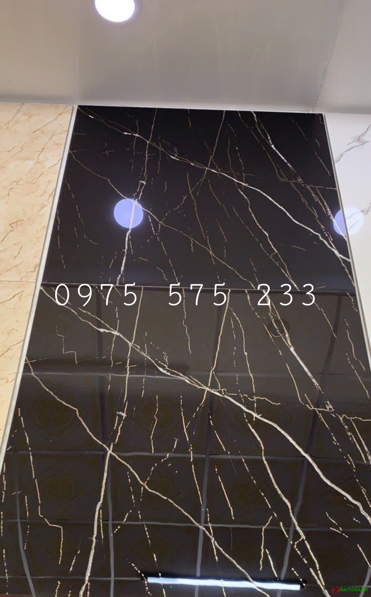 Gạch siêu bóng 80×80 đen vân khắc kim nổi bật đẹp