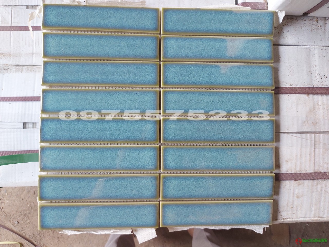 Gạch thanh đũa mosaic xanh gốm men dạn