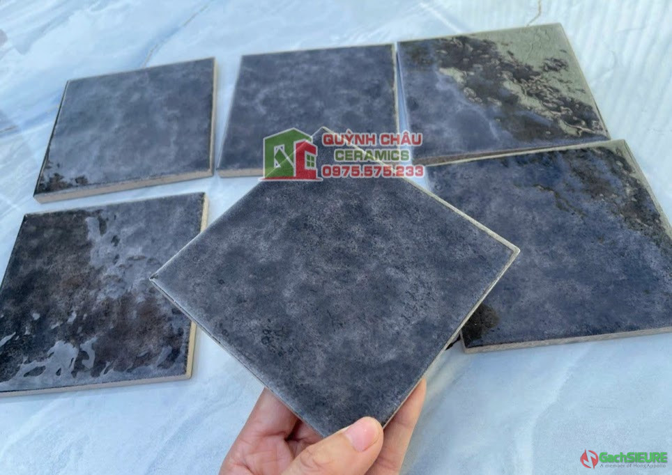 Gạch thẻ 123×123 màu nâu đen bề mặt men gợn sóng