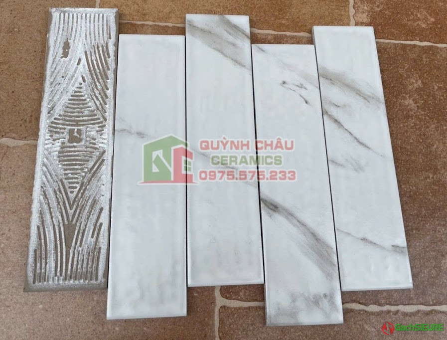 Gạch thẻ 75×300 bề mặt gợn sóng trắng mờ vân mây