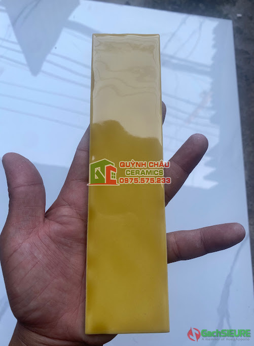 Gạch thẻ bóng 5×20 màu vàng men gợn sóng