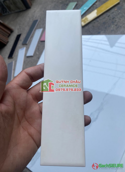 Gạch thẻ màu kem 5×20 bề mặt mờ men mịn