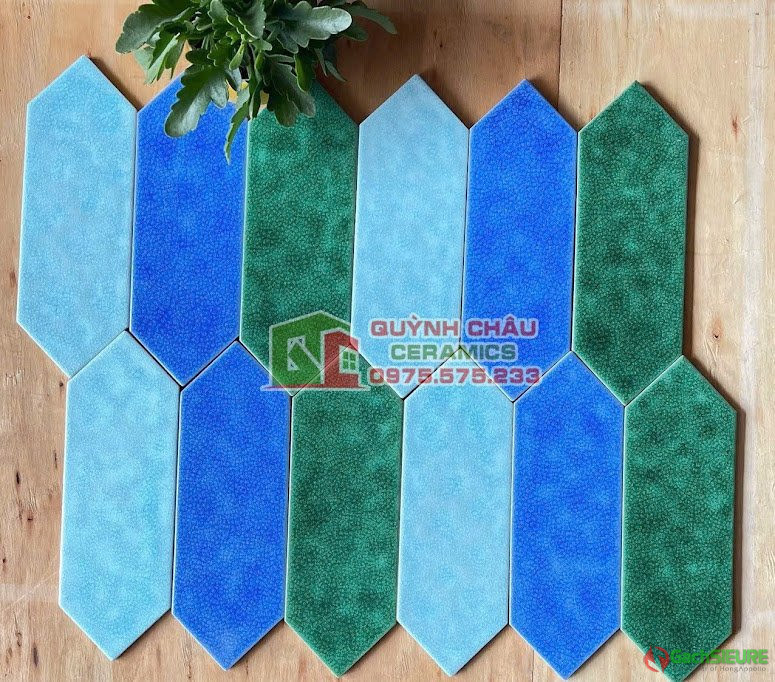 Gạch thẻ mũi tên màu xanh dương men gốm dạn | Gạch thẻ hình mũi tên với bề mặt màu xanh dương men rạn bóng được thiết kế với dạng hình thẻ nhọn mũi tên 2 đầu,được ứng dụng rộng rãi trong ốp lát phòng tắm,nhà bếp,phòng khách,. Bề mặt hoạ tiết vân men rạn ấn tượng,mang đến cho sản phẩm màu sắc bắt mắt,tinh xảo cùng hoạ tiết vân rạn ấn tượng.Và được sử dụng để lựa chọn ốp lát trang trí ở nhiều không gian khác nhau.
