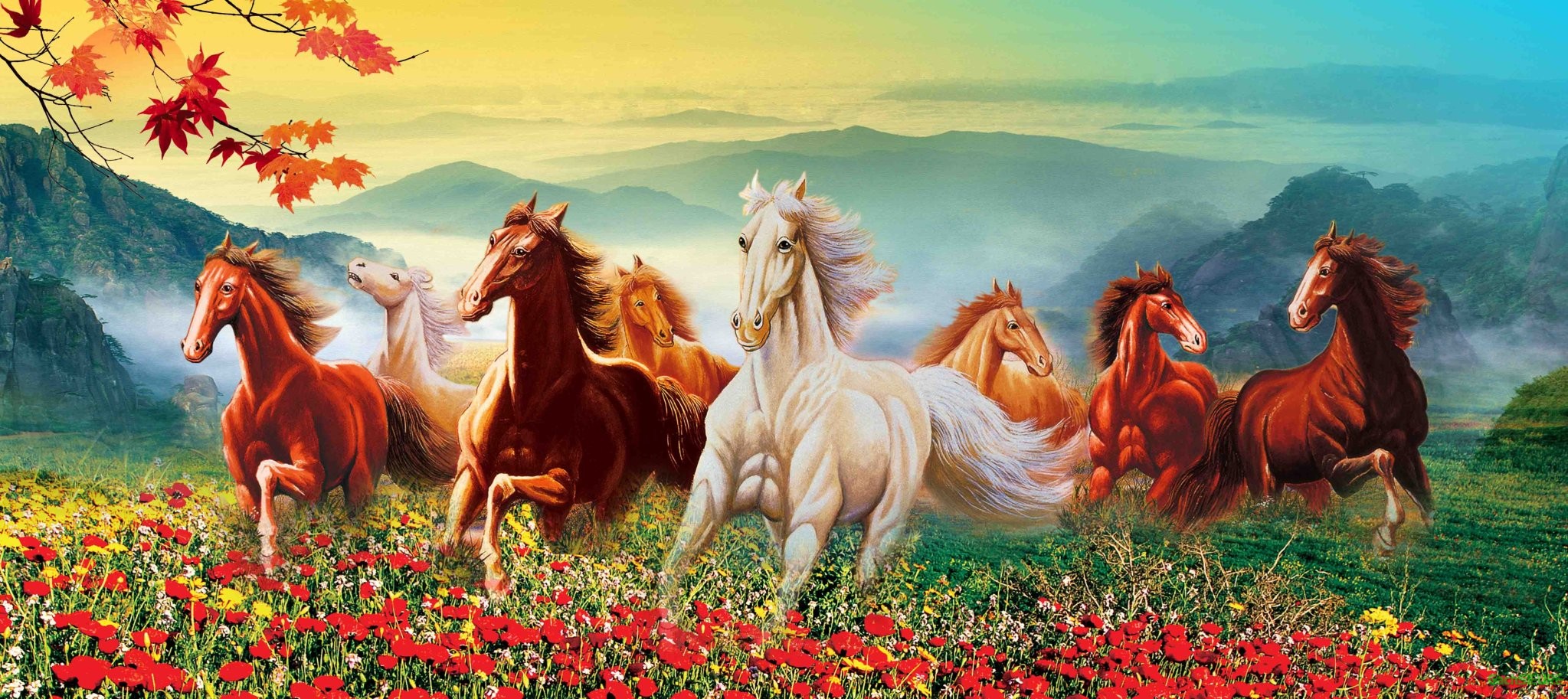 Gạch tranh trang trí 5d mã đáo thành công bóng kính nhũ kim tuyến đẹp