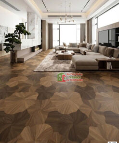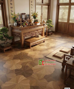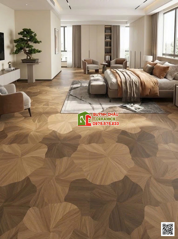 Sự kết hợp này mang lại một vẻ đẹp vừa cổ điển, vừa hiện đại, biến sàn nhà trở thành một bức tranh thuỷ mặc khổng lồ, đầy chất nghệ thuật.