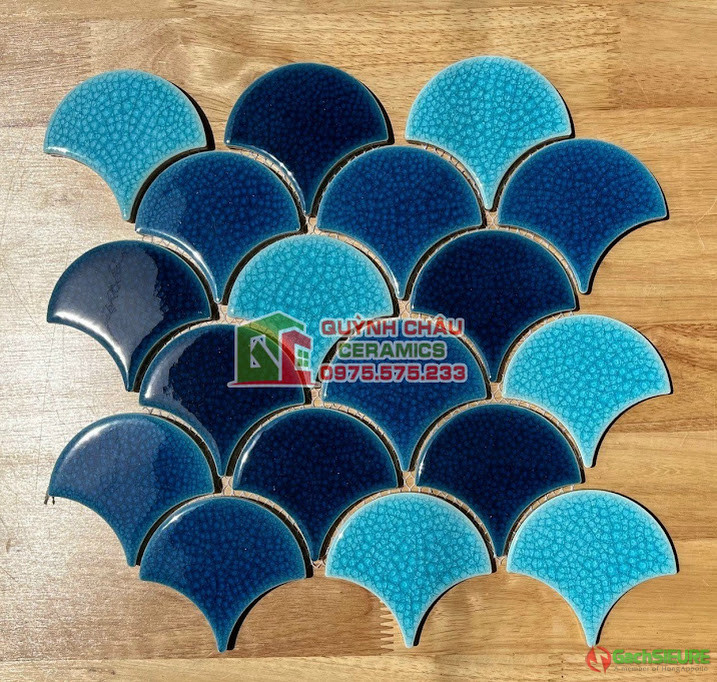 Gạch vảy cá phối màu xanh mix ngẫu nhiên mosaic men dạn