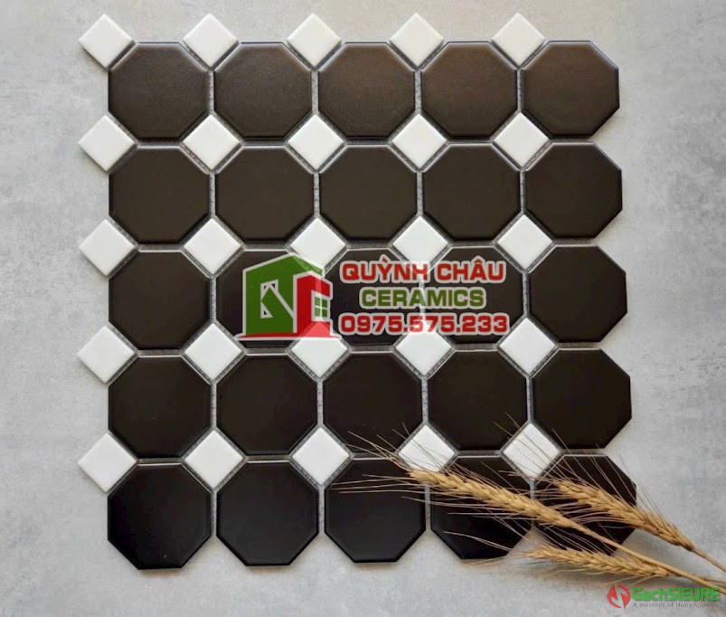 Gạch vỉ mosaic bát giác màu đen mờ | Gạch mosaic bát giác bề mặt màu đen men mờ được tạo thành từ các viên gạch nhỏ hình bát giác ghép lại với nhau ở dạng vỉ lưới.Gạch vỉ mosaic hình bát giác thường được sử dụng để trang trí các bề mặt như tường,nền sàn.Với tính năng độc đáo gạch mosaic bát giác tạo ra một hiệu ứng tuyệt vời cho không gian nội thất / ngoại thất.