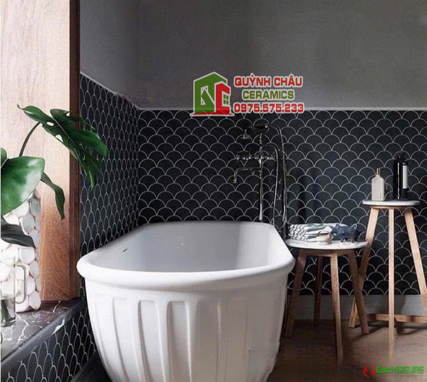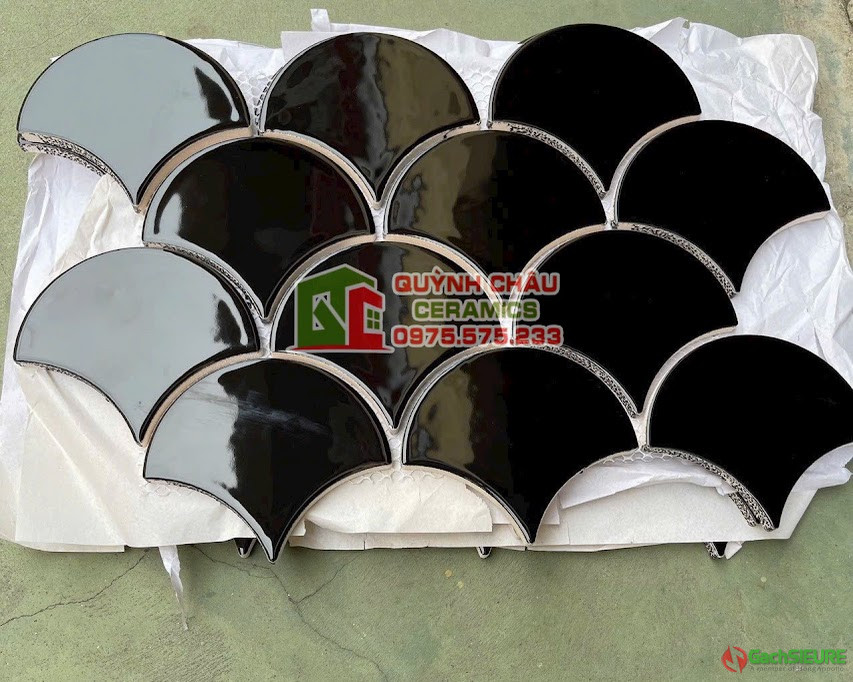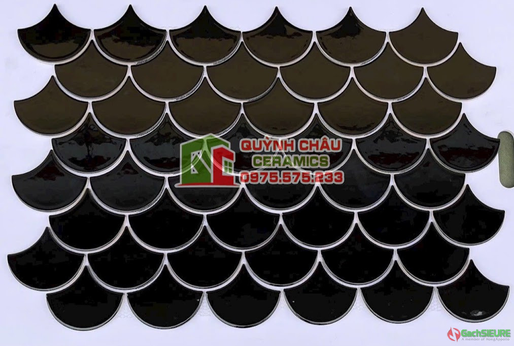 Gạch vỉ mosaic vảy cá màu đen bóng