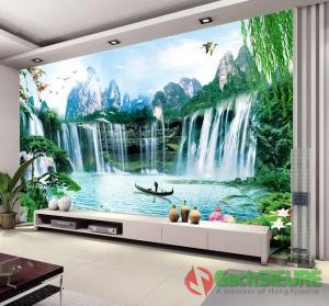 Tranh gạch 3d khổ to lớn phong số thủy hữu tình dán phòng khách 98